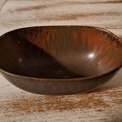 Brun skål från Rörstrand. Märkt med Sweden CAH under. Det finns ett litet märke längst upp på kanten. Se sista bilden.