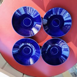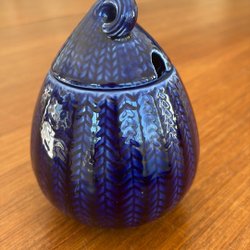 Sockerskål från Rörstrand i blått med mönster.