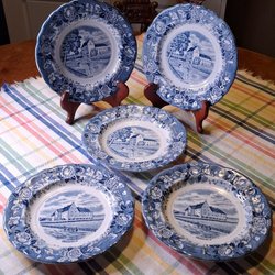 En assiett i porslin från Rörstrand servis Skåne motiv Dybäck. Det finns ett nagg i kanten, se bild.