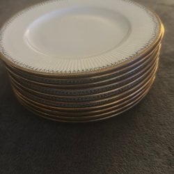 Assietter från Rörstrand med guldkant.