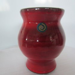 Retro vas med blommotiv och handtag.