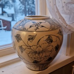 Enligt bild och rubrik. Kruka från Höganäs. Stengods. Rymmer 2 L. Ca 80-tal med ny stämpel. Gott skick. 16 cm hög. 1426 g opackad.
