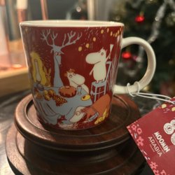 Mumin kanna med motiv. Objektet säljs ur privat ägo och utgör en del av en personlig samling med motiv skapade av Tove Jansson.