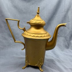 En läcker lejongul tekopp med svart gradient och reliefdekor i form av små änglar. Från anrika Crown Devon i England.