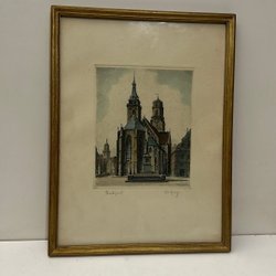 En vacker tavla med ett motiv av ett landskap sett genom en träram. Signerad och numrerad 41/360. Årtal 1970.