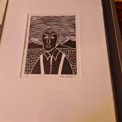 Två tavlor med landskapsmotiv. En tavla föreställer en skogssjö med träd som speglar sig i vattnet. Den andra tavlan föreställer ett landskap med björkar vid vatten och höstlövsfärger i bakgrunden. Båda tavlorna är signerade.