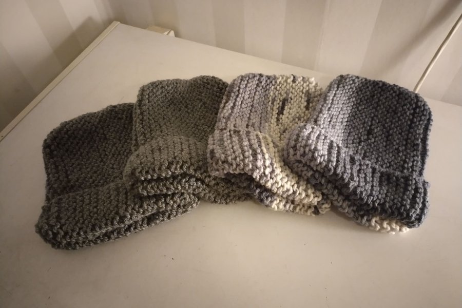 4 pack hemstickade mössor 2 med reflexgarn
