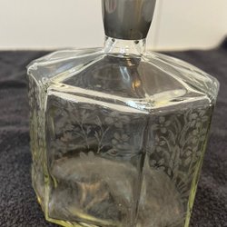 Antik blåst glasflaska med handmålad dekor. Enl.bilder.
