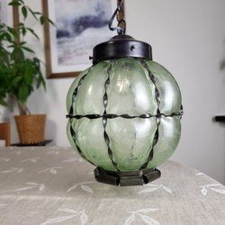 Antik Flaska Brännvinsflaska 1800-tal Grönt Glas Bemålad