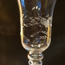 En dekorativ gammal brännvinsflaska med ett handmålat blomstermotiv (kejsarkrona?)