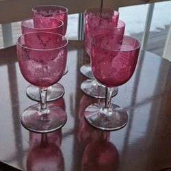 6 ST. VINGLAS, GRÖN KUPA MED FÖRGYLLD KANT. RETRO.