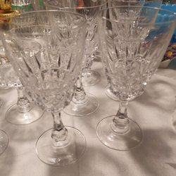 6 st vinglas i kristall. Glasen har en slipad dekor och en kula på foten.