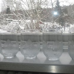 5 st Glas. Perfekt för alla tillfällen. De är 7.5 cm höga o 8 cm i diameter upptill. De är stapelbara