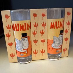 Mumin samlarglas från Max, 2 st i förpackning. H13,5 cm Ø 6 cm