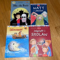10 st barnböcker i gott begagnat skick. Super-Charlie & Spökfällan samt Super-Charlie och mormorsmysteriet av Camilla Läckberg. Nicke Nyfiken 2st, Pelle Svanslös 2st, Igelkotten klarar sig själv av Ulf Stark samt 3st böcker av Källander & Helldorff.