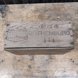 En rustik trälåda med tryck. Perfekt för förvaring eller som en dekorativ detalj i hemmet.
