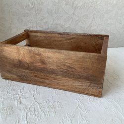 En rustik trälåda med tryck. Perfekt för förvaring eller som en dekorativ detalj i hemmet.