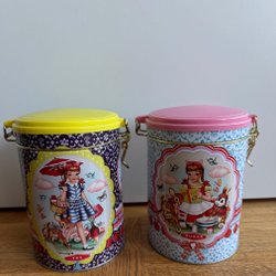 En pappburk , brun farin, en plåtburk vanillin socker från Svea choklad Norrköping, och en liten plåtburk Albyl .
