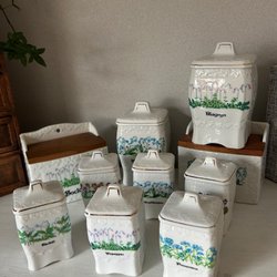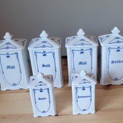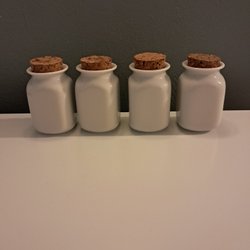 4 burkar i trä och keramik
