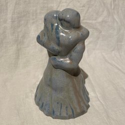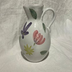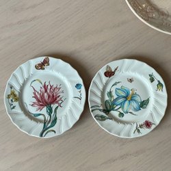 Fat i form av en fisk. Fatet har en grönblå , rosa nyans med detaljer som fjäll och fenor. Materialet är keramik.