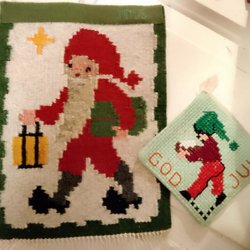 2 retro-brickor i metall/plast, grafiskt svart/vit.