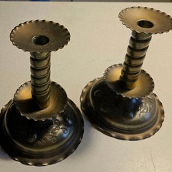Ett par ljusstakar i mässing. Ca 17.5cm höga. Har en del patina, se bilder.