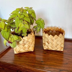 Två korgar. Rustik Eva Lindow Mora blå handmålad korg och en vit rund korg.