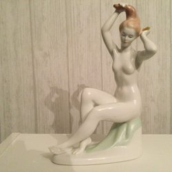 Vacker Figurin porslin naken kvinna dansar bland vågorna. St. W A. Perfekt. Mint