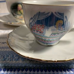 Ett set med två vackra porslinsfigurer i vintage stil. Figurerna föreställer kvinnor i eleganta klänningar från en svunnen tid. Perfekt som dekoration i hemmet eller som en del av en samling.Den höga figurinen mäter 21 cm.Den korta 15,5 cm.