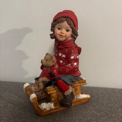 Söt figur föreställande en sittande flicka med rosetter i håret. Perfekt som dekoration i barnrummet eller som en charmig detalj i bokhyllan.