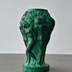 Max diameter ca 12 cm cm, diameter för vas max ca 9,3 cm. Höjd ca 4 cm den är limmad tvärs över och det finns en skada på ena sidan, se bilder