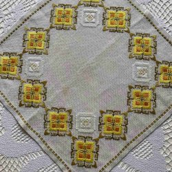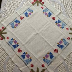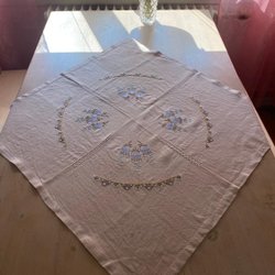Ljuvlig handbroderad linneduk med rosor i strl 60x57