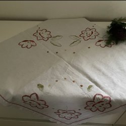 En äldre handbroderad söt duk
