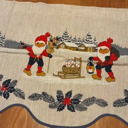 Fin retro duk med motiv av dalahästar och signerad Mia L.