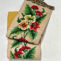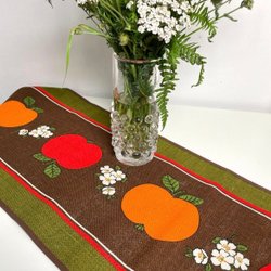 En handvävd linneduk med grövre struktur, hantverk, hemslöjd, mått 56 x 49 cm. Röda, rosa och rostfärgade toner. Fin till jul.