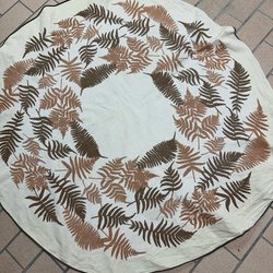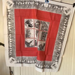 Retro duk med orange, gula, vita och bruna färger.