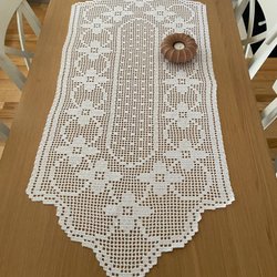 En vacker handgjord virkad duk i färgglada färger. Perfekt för att dekorera ditt hem eller som en unik present.