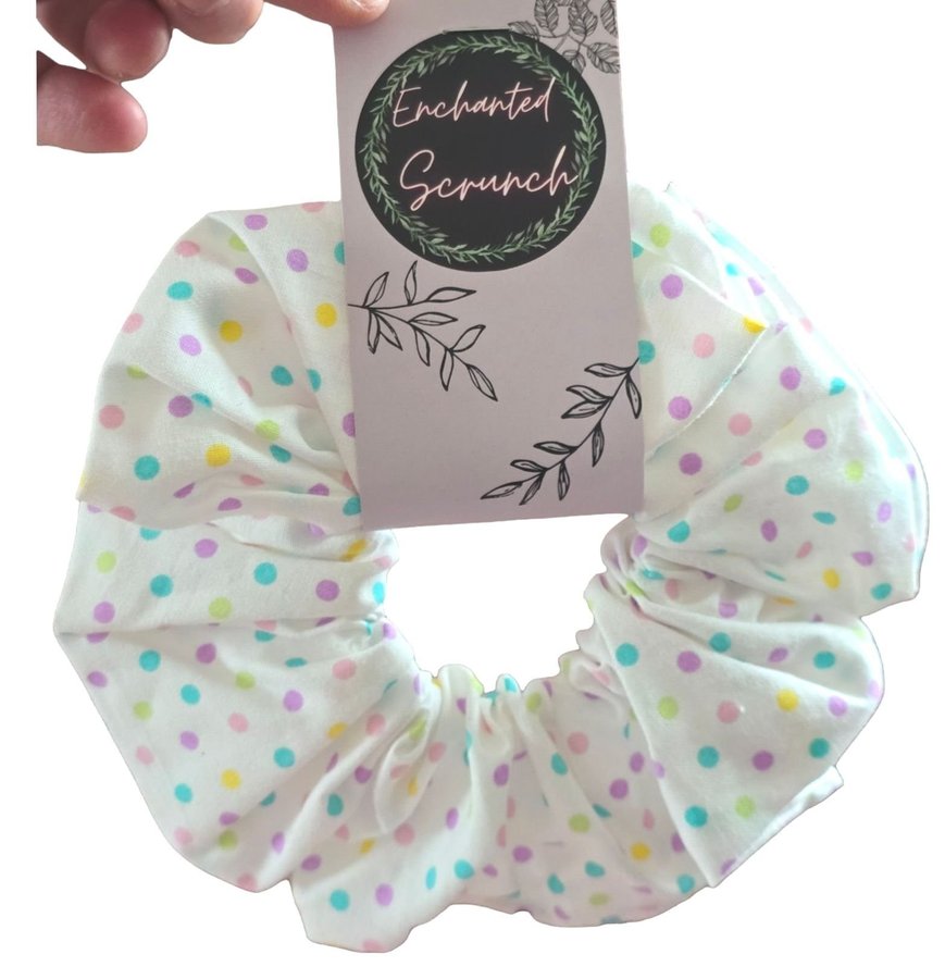 KÄND FRÅN TIKTOK Vit / pastell prickig XXL / överdimensionerad Påsk Scrunchie från Enchanted Scrunch. Cosplay / håraccessoar / hårsmycke TREND Kawaii