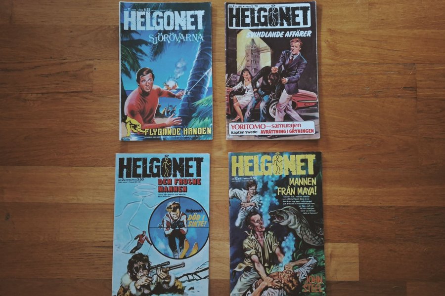 fyra nummer av Helgonet nr 11 från 1979. nr 4 från 1983. nr 2 från 1978 och nr 12 från 1977.