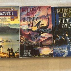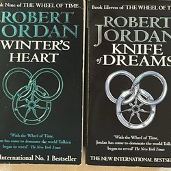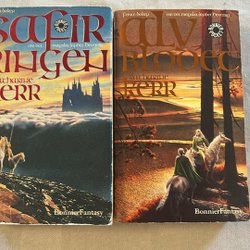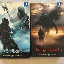 Två böcker av Patrick Rothfuss: "Vindens Namn" (Del 2 av Krönikan om Kungadråparen) och "En Vis Mans Fruktan" (Del 1 av Krönikan om Kungadråparen). Publicerade 2012.