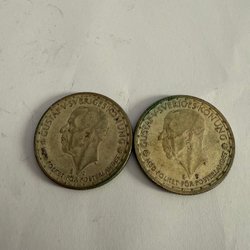 Två silvermynt från Grekland, präglade i samband med OS i Aten 2004. Valören är 10 Euro per mynt.