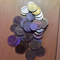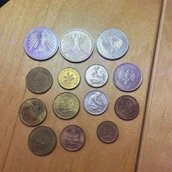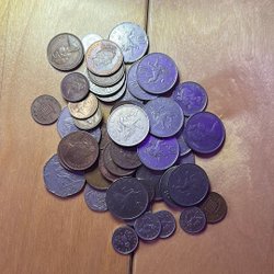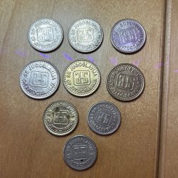 En samling spanska mynt med olika valörer.