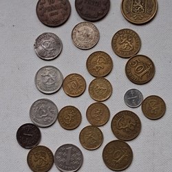 En samling av äldre mynt från Storbritannien. Inkluderar mynt från olika årtal och valörer. Bland annat finns: Sex Pence 1935, Sex Pence 1929, One Shilling 1939, Half Crown 1959, Shilling 1961, One Penny 1917, One Penny 1920, Half Penny 1964, Two Pence 1971, 50 Pence 1969, 50 Pence 1998, 10 Pence 1992, 20 Pence 1986, 5 Pence 1990.