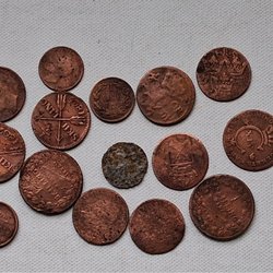 14 äldre mynt från Storbritannien, Great Britain.