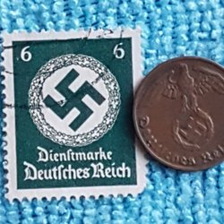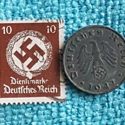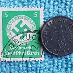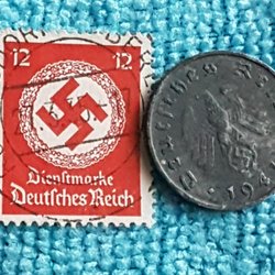 WW2, Nazi Tyskland, 1 Reichspfenning 1942A med guldöverdrag 24 Karat + frimärke!