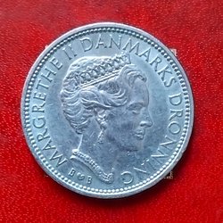 • Margrethe II: nutida mynt med Danmarks nuvarande drottning.