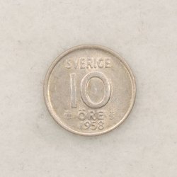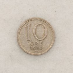 Her er en 10 øre fra 1943. Perfekt til møntsamlere eller som en del af en historisk samling.