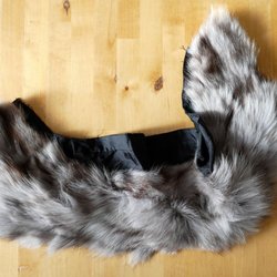 Pälskrage i grå och bruna nyanser. Kragen är ca 70 cm lång(se bild) var tänkt att jag skulle sy fast den på en jacka, men blev aldrig av.