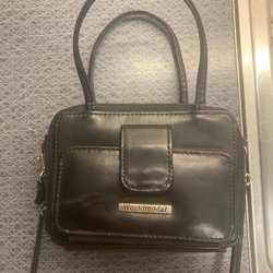 En festlig aftonväska dekorerad med pärlor. Knappt använd. Storlek bredd - 14 cm, längd- 18 cm. Blixtlås. Rummens längd - 115 cm.