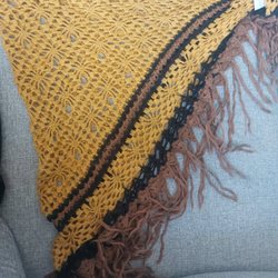 Strikket/hæklet sjæl i hvidt.